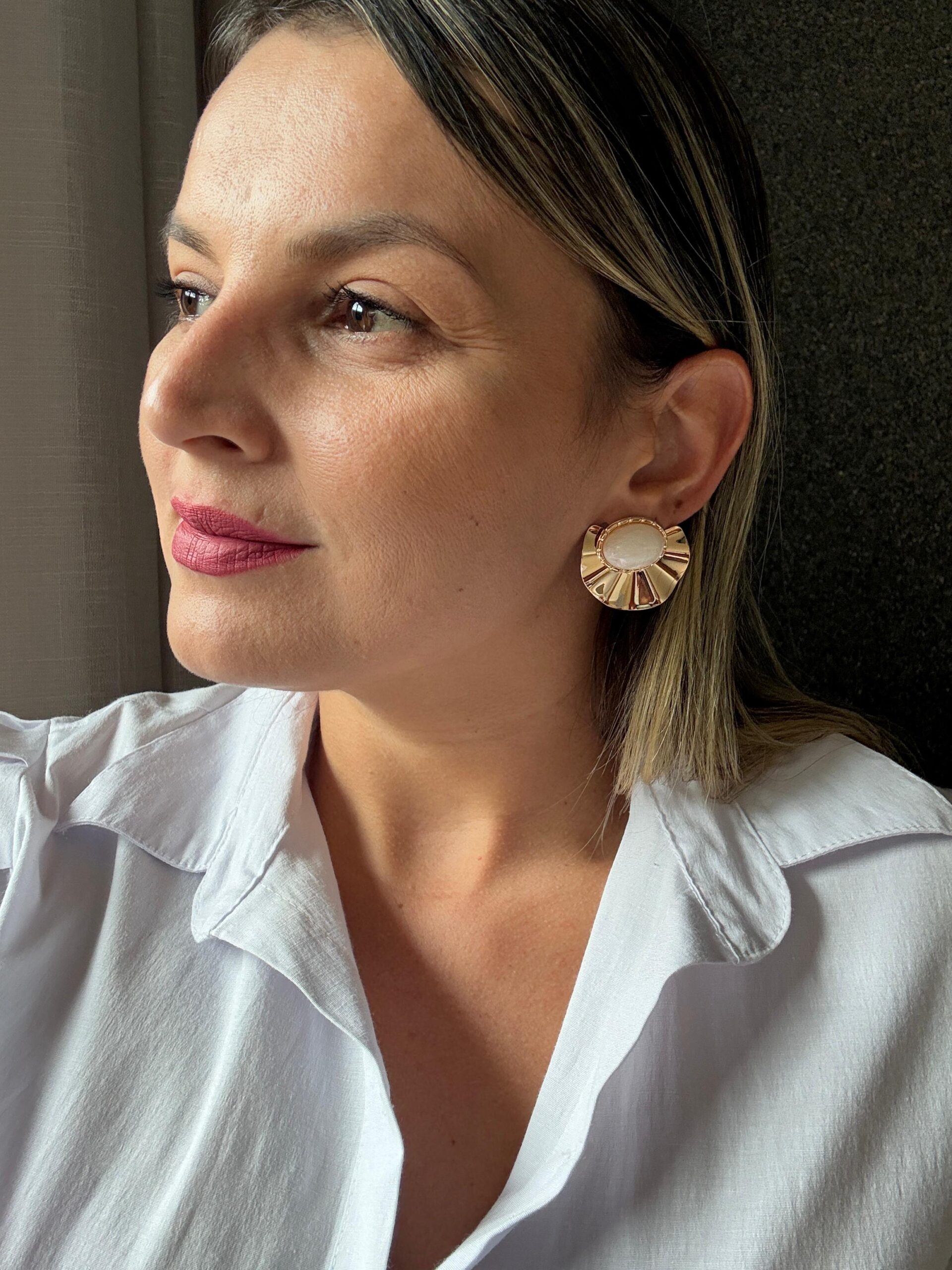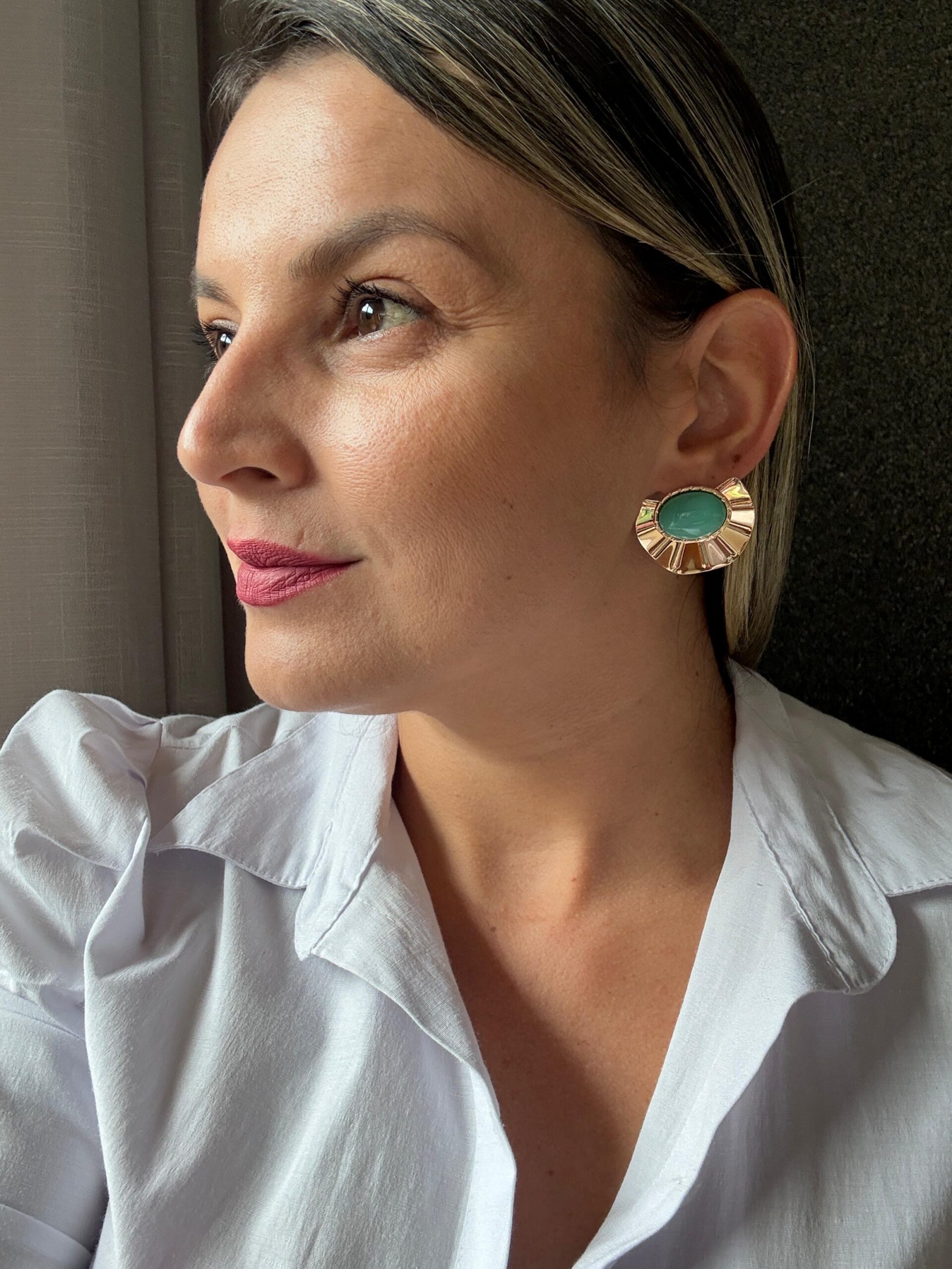 Brinco com detalhes orgânicos, e diferencial e a resina em cores, da vontade de ter um de cada.