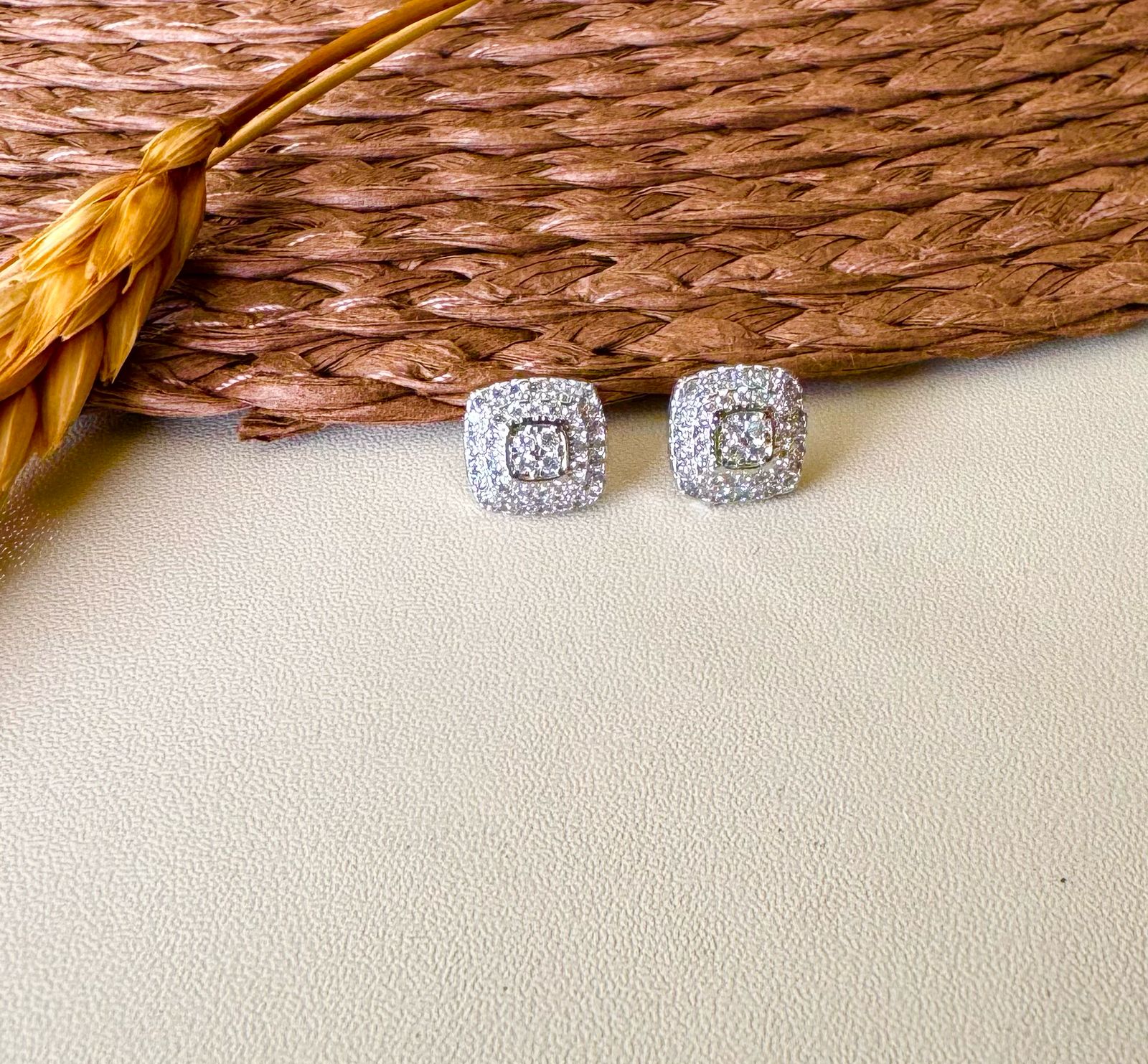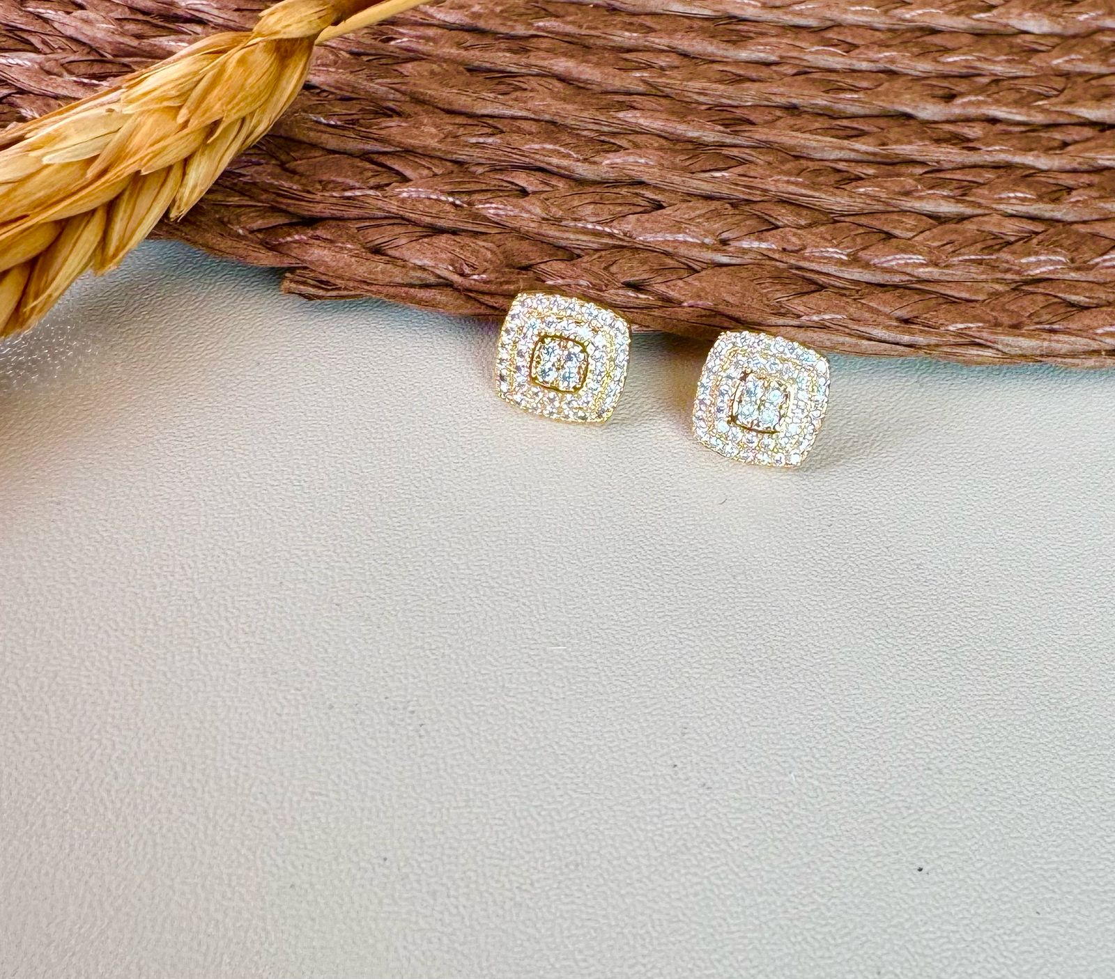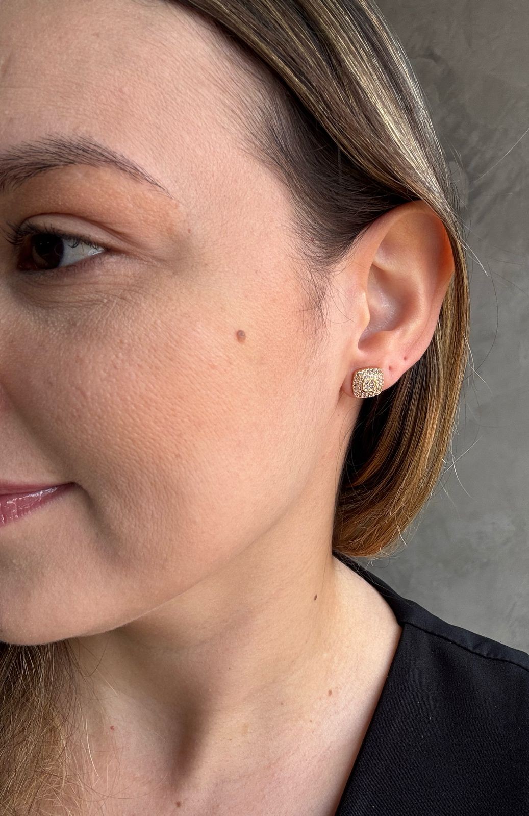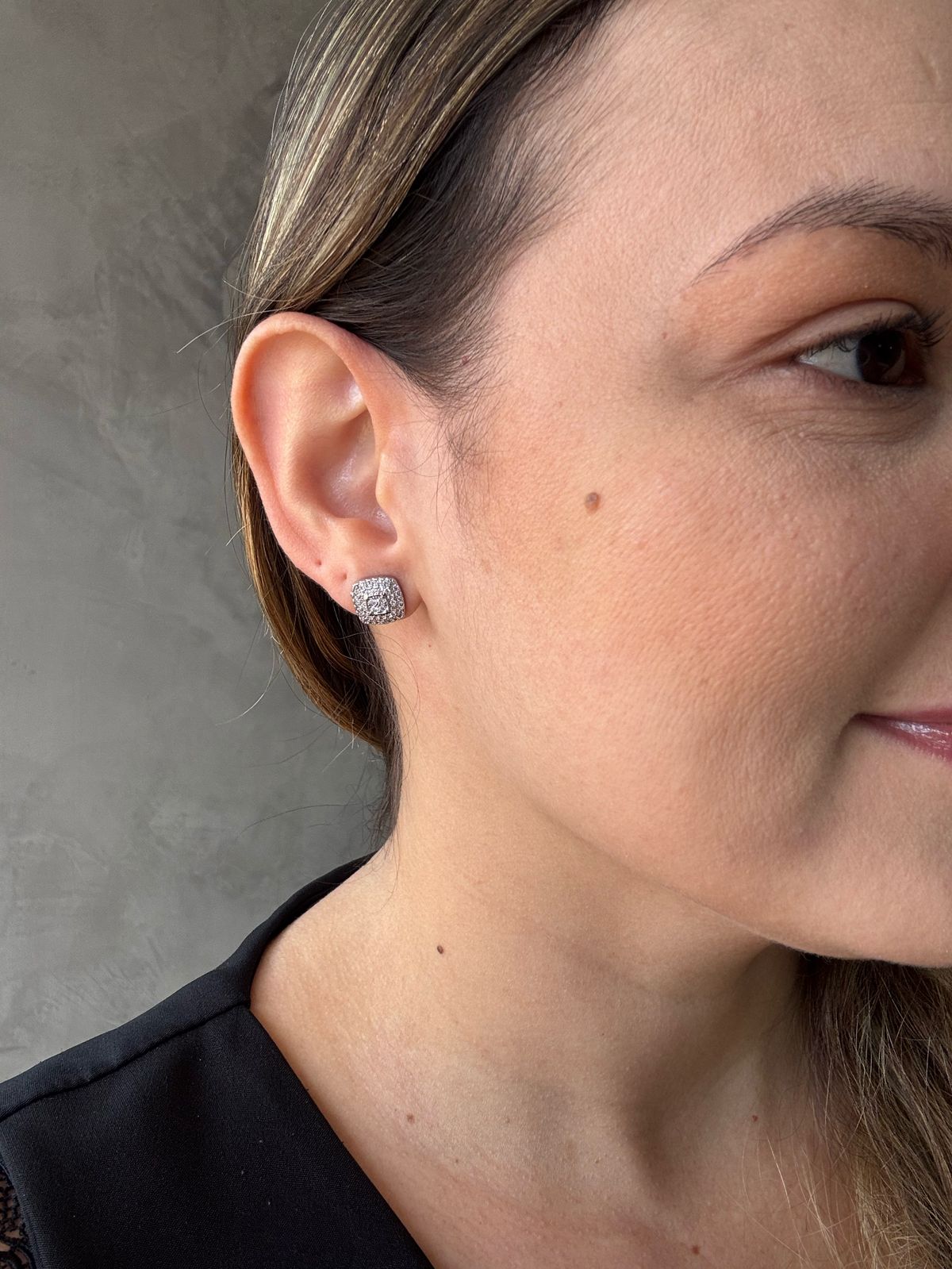 Brinco Ponto de Luz modelo quadrado todo cravejado com microzirconias.