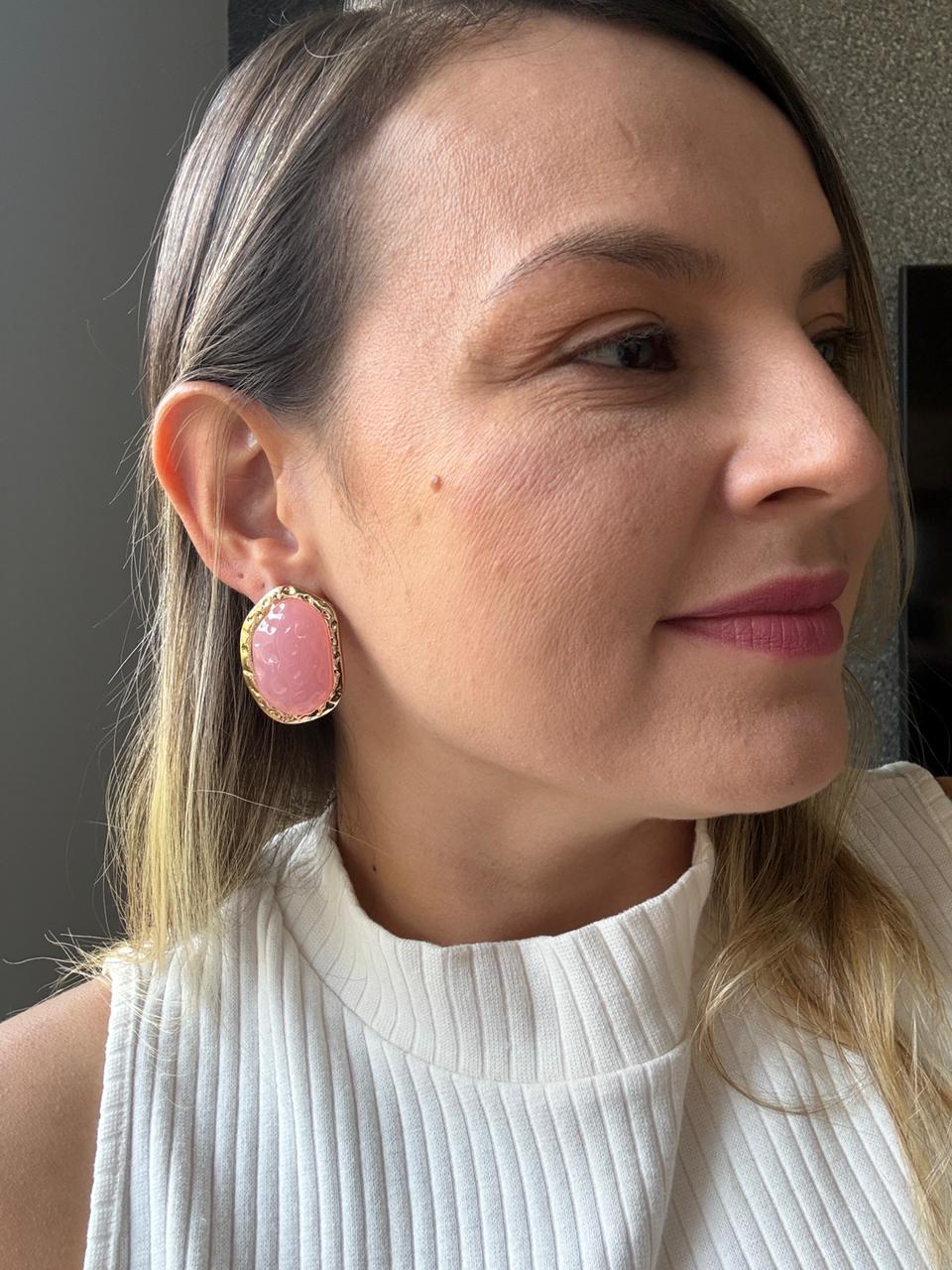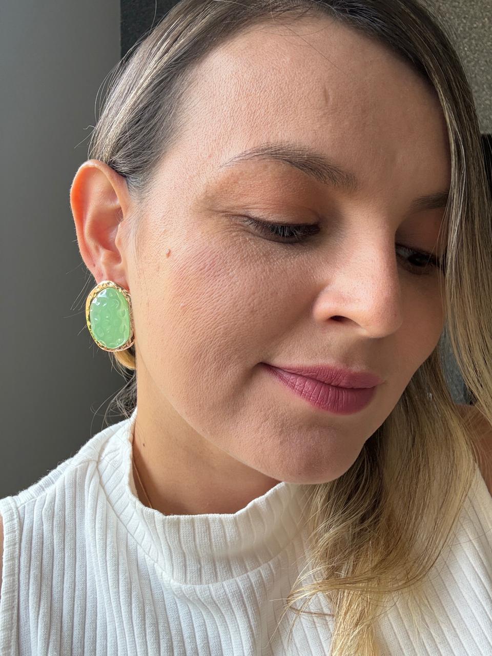 Brinco robusto e classico com detalhe de resina.