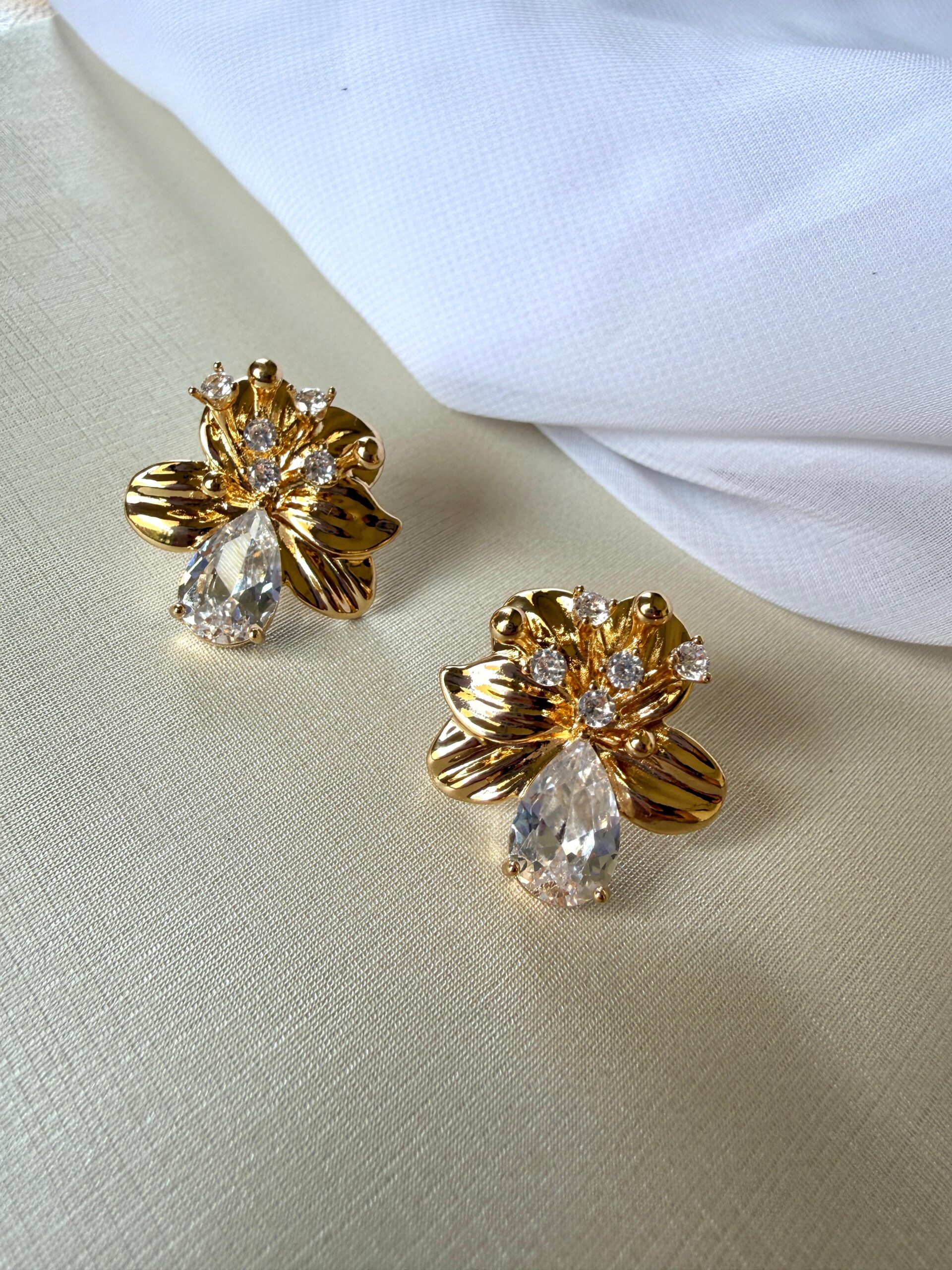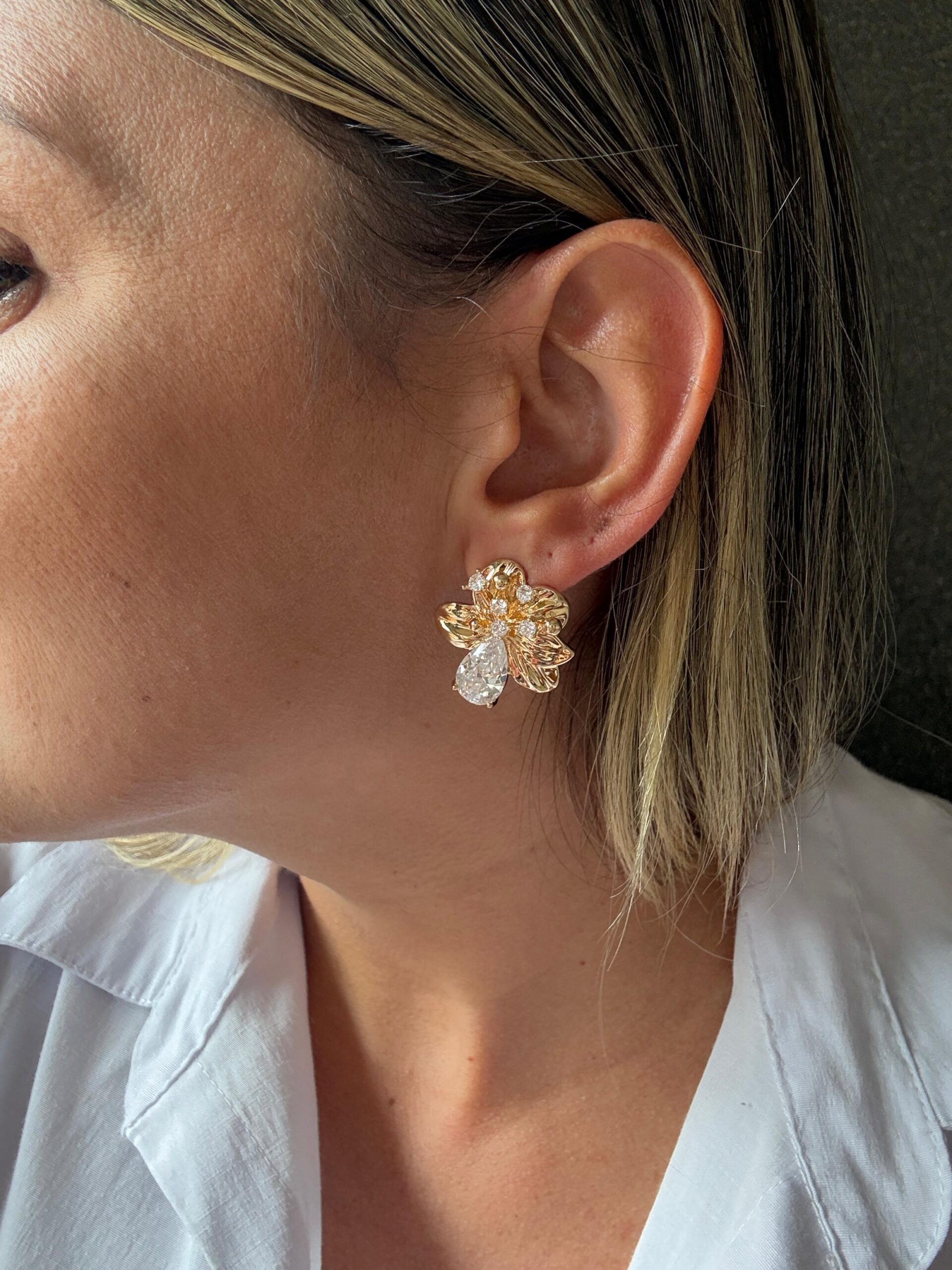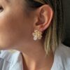 Brinco medio todo no design de flor cravejado com micro zircônias.