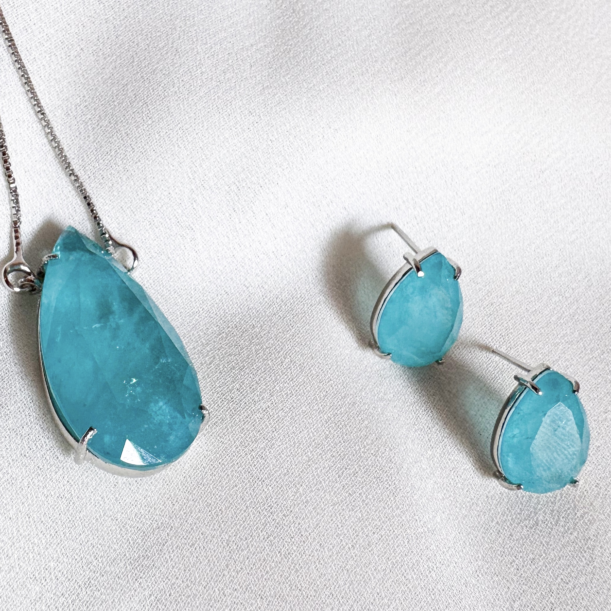 Conjunto em Pedra Fusion Azul Cristal.