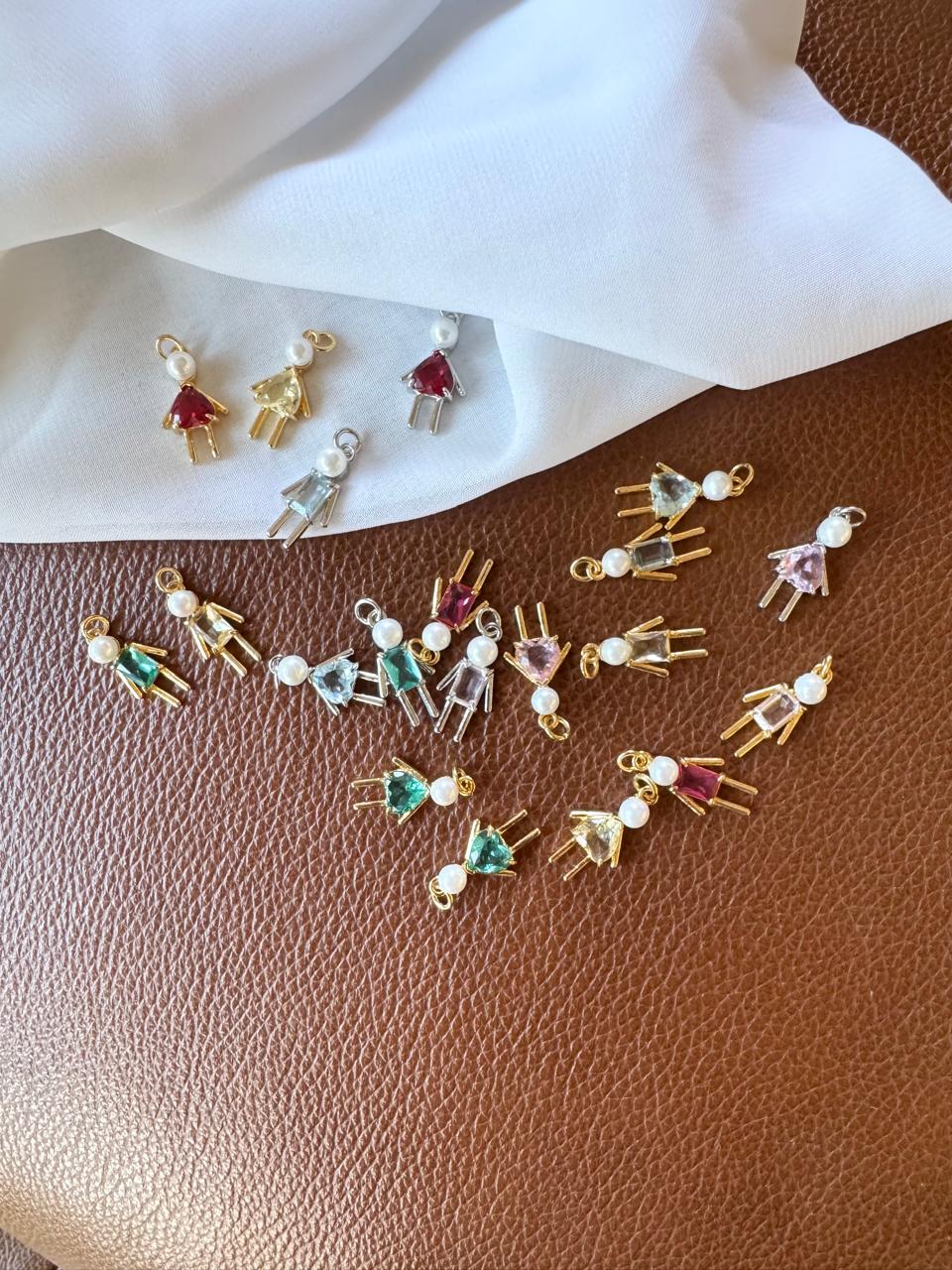 Pingente Minimalista de Filhos com detalhe em perola e zirconia colorida.