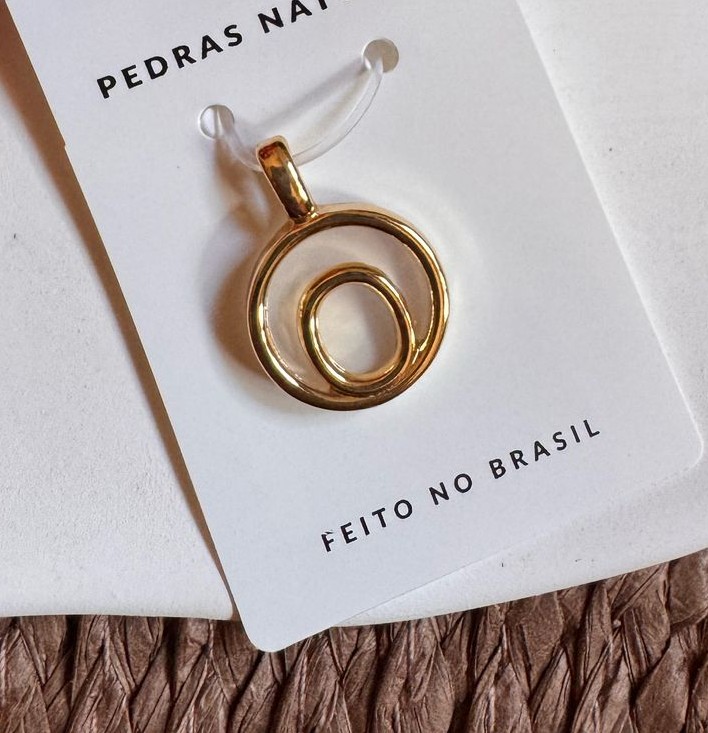 Pingente Personalizado Inicial com Pedra Natural, confeccionado em Banho de Ouro 18k.