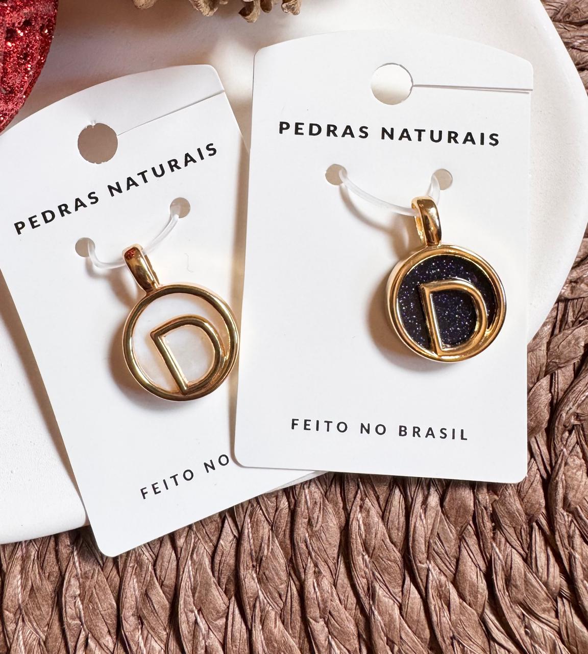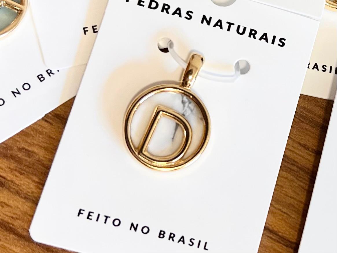 Pingente Personalizado Inicial, confeccionado em Pedra Natural com Banho de Ouro 18k.