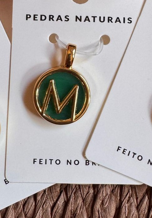 Pingente Personalizado Inicial com Pedra Natural, confeccionado em Banho de Ouro 18k.