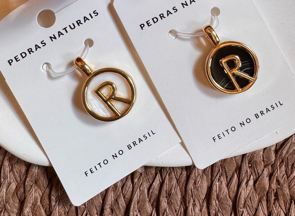 Pingente Personalizado Inicial com Pedra Natural, confeccionado em Banho de Ouro 18k.