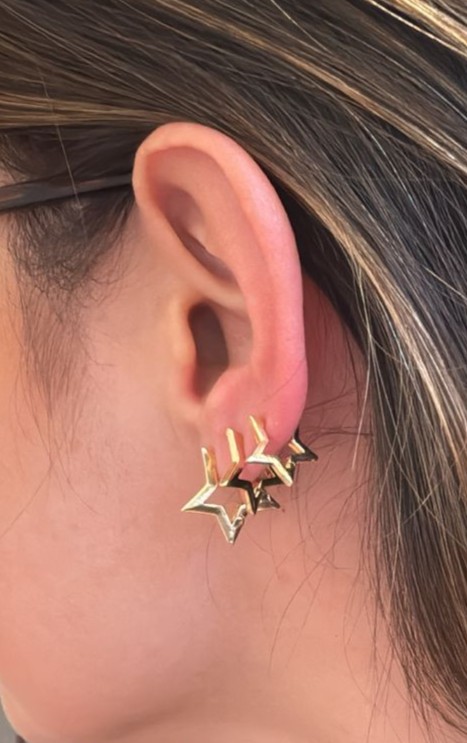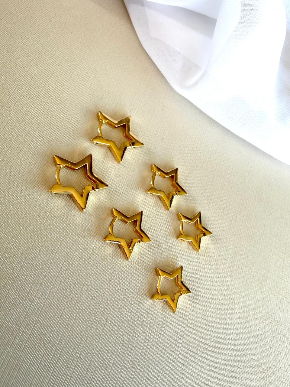 Trio em Argolas Click, no formato de estrela, com acabamento liso